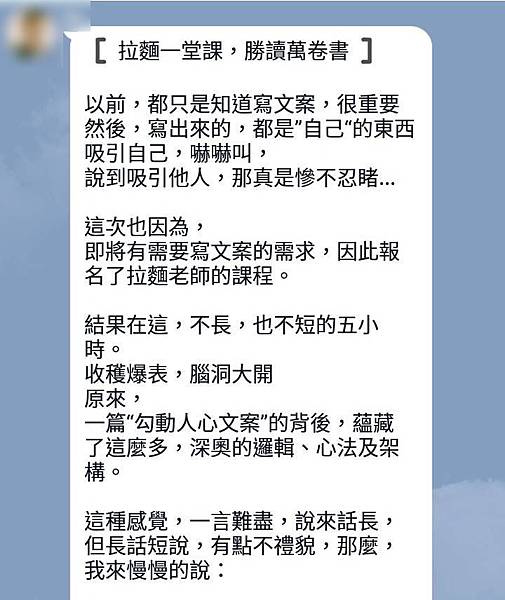 這次也因為, 即將有需要寫文案的需求,因此報名了拉麵老師的課程。