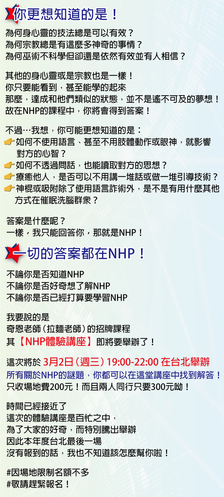 【NHP體驗講座】三月登場!所有關於NHP的謎題,你都可以在這堂講座中找到解答!